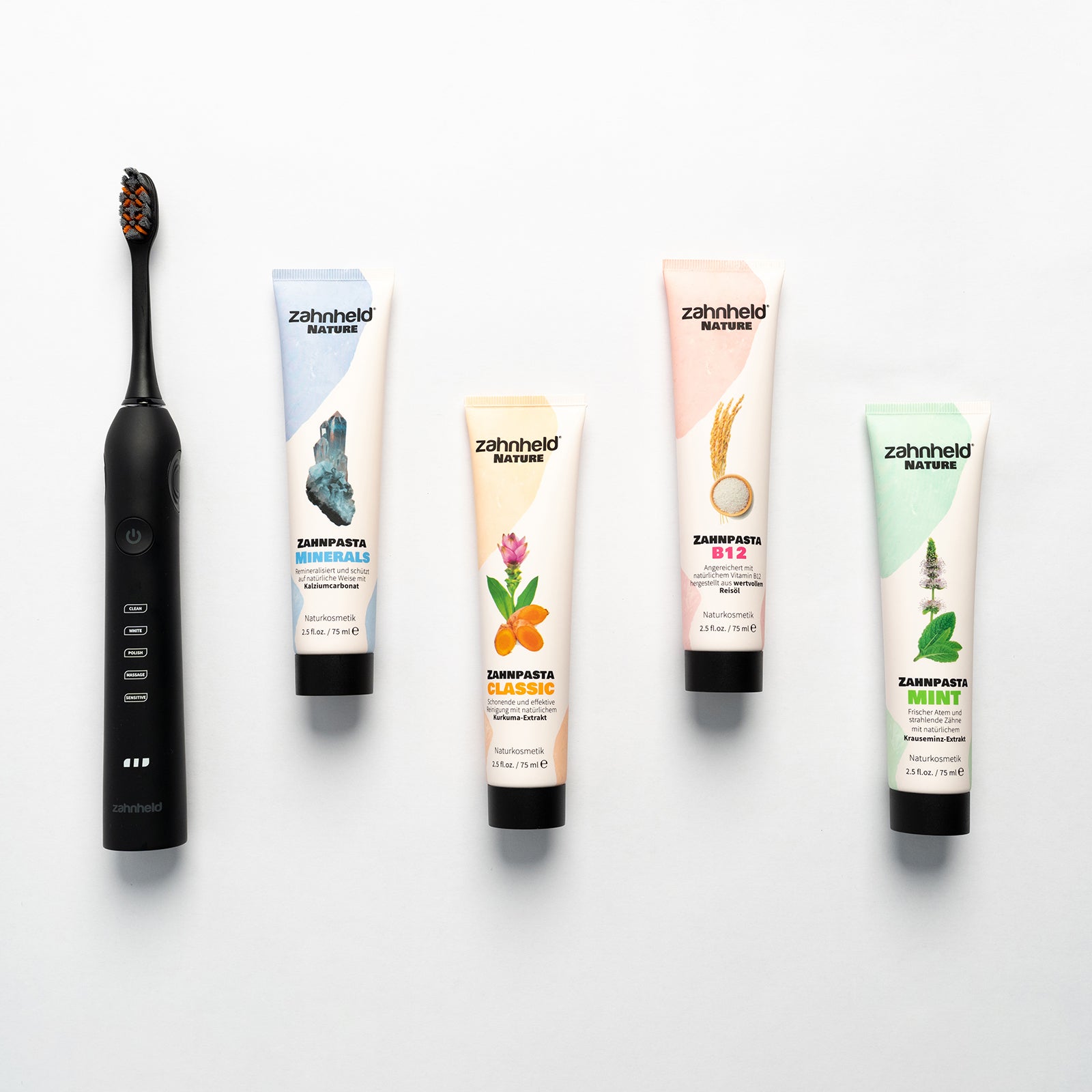 Rundum sauber ab Tag eins. Kauf die Schallzahnbürste G2 und wähle direkt auf der Produktseite deine gratis Nature-Zahnpasta aus.